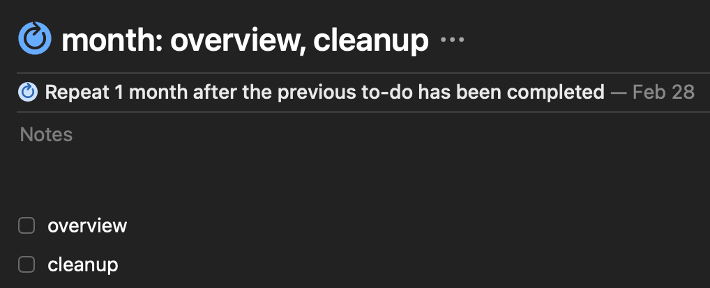 Aside from the weekly recurring task and my optimized habits, I also plan to do a monthly overview which is also a recurring task.